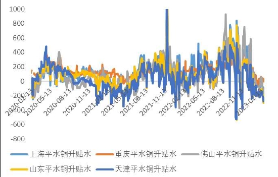 图表4:全国主要市场铜现货升贴水(元/吨)
