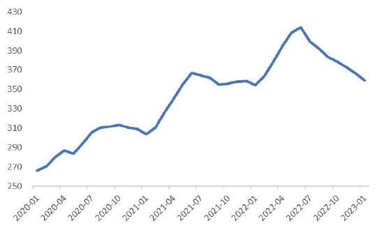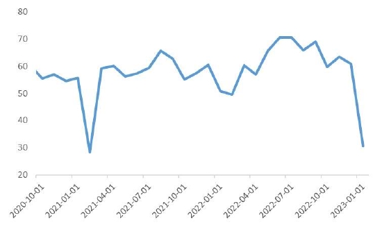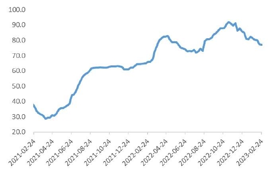 2022年12月,70个大中城市新建商品住宅和二手住宅价格同比分别下降2.3%和3.8%,同比分别下降4.3%和4.8%;1-12月全国商品房销售面积、销售额同比分别下降24.3%和26.7%,房地产开发投资同比下降10%,其中,住宅开发投资同比下降9.5%。“两会”临近,市场对经济和产业政策抱有预期,需求端有望在政策影响下边际改善。