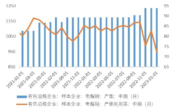 据Mysteel,2023年国内炼厂增量主要来自去年阳新弘盛、江铜清远和浙江富冶的爬产与达产及今年将扩产的白银有色和北方铜业,去年上新的产能已在一季度接近满产,今年新产能将集中于四季度释放。全年来看,检修减产的影响或更多集中于上半年,3月检修影响量大致在7万吨。