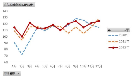 图表15:中国电解铜实际消费(万吨)