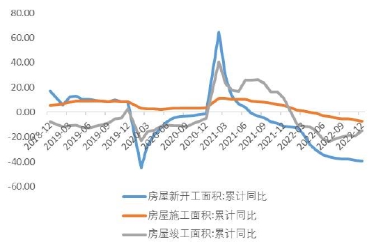 图表23:国内房屋新开工/施工/竣工面积同比(%)