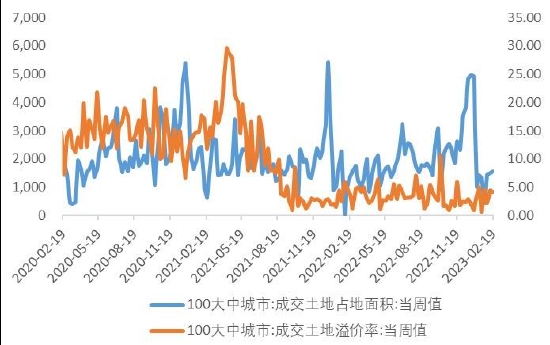 图表24:国内百大城市土地成交情况(万平方米,%)