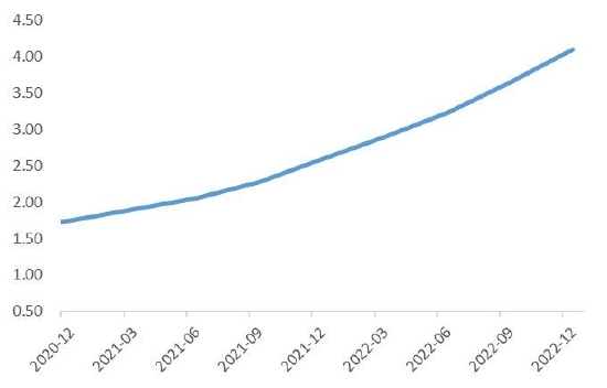 2022年12月国内未锻轧的精炼铜阴极及阴极型材进口量34.79万吨,环比减少3.15%,同比减少12.9%,2022年全年累计进口370.93万吨,同比增长7.75%。当前进口窗口关闭抑制我国电解铜进口,沪伦比值呈现修复态势。