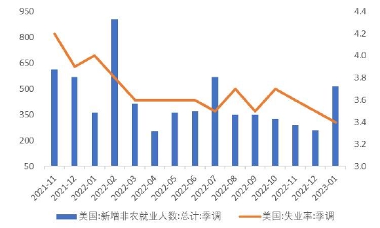 美国疫情相关补贴基本退出,赤字水平接近疫情前,2023年经济降温或在所难免。但也需要注意,美国劳动力市场依然紧俏,平均时薪维持高位,居民端资产负债表总体健康,经济韧性仍具有持续性,加息预期反复对市场的扰动为阶段性。
